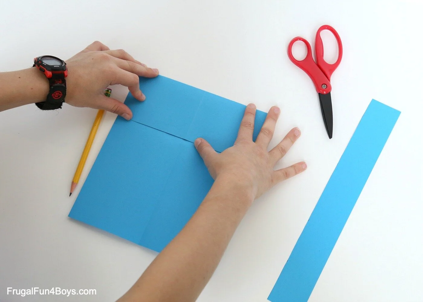 Step1: 拿出A4大小的圖畫紙,從長邊向下摺4-5公分。