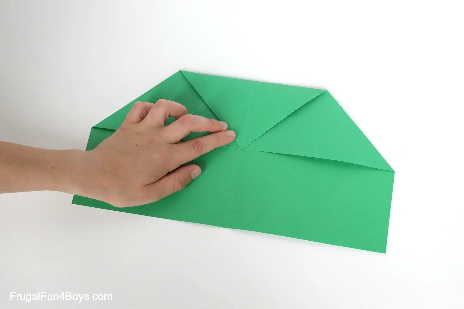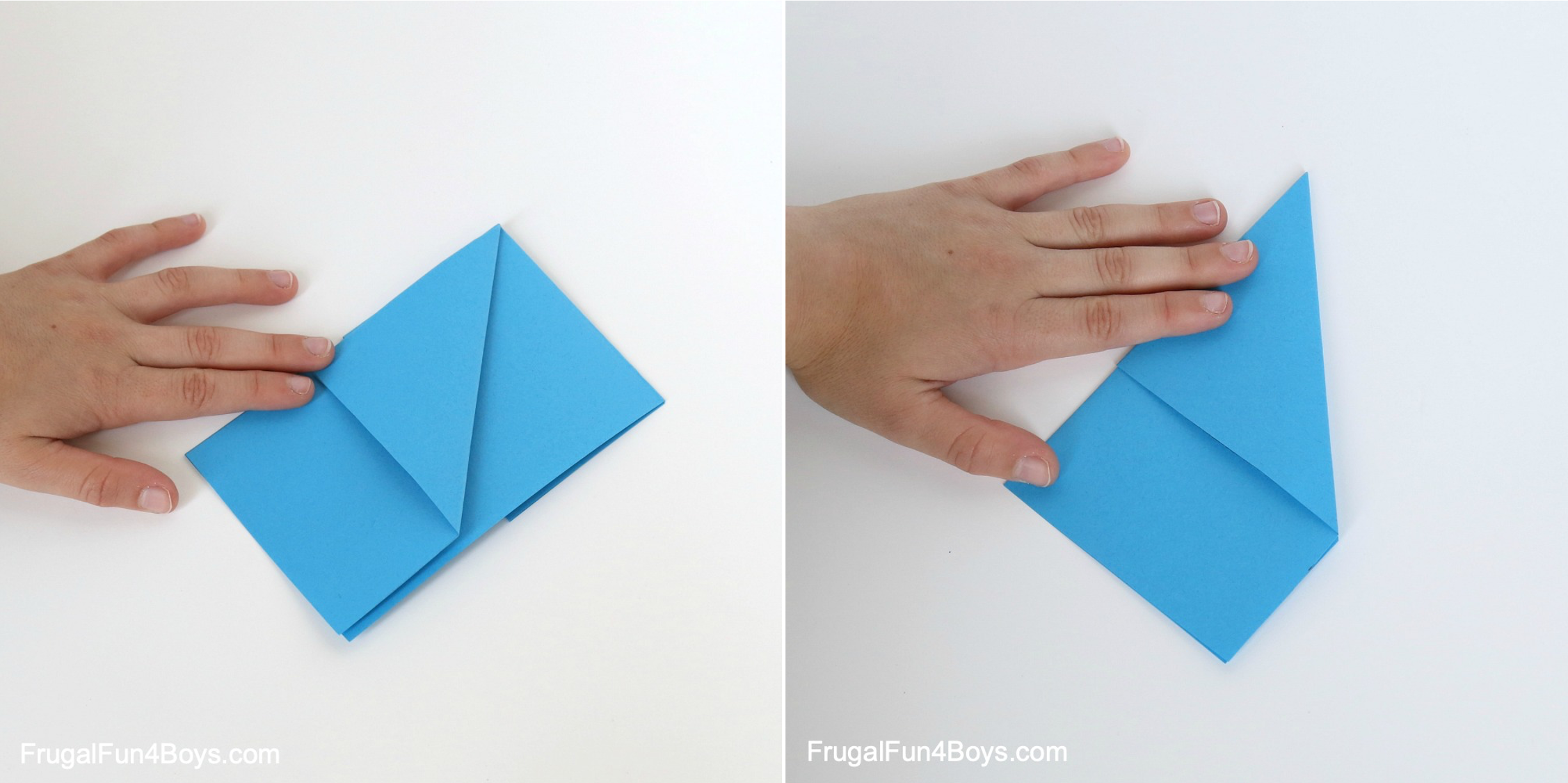 Step7: 先翻到其中一面,往下摺出機翼,另一邊也是。